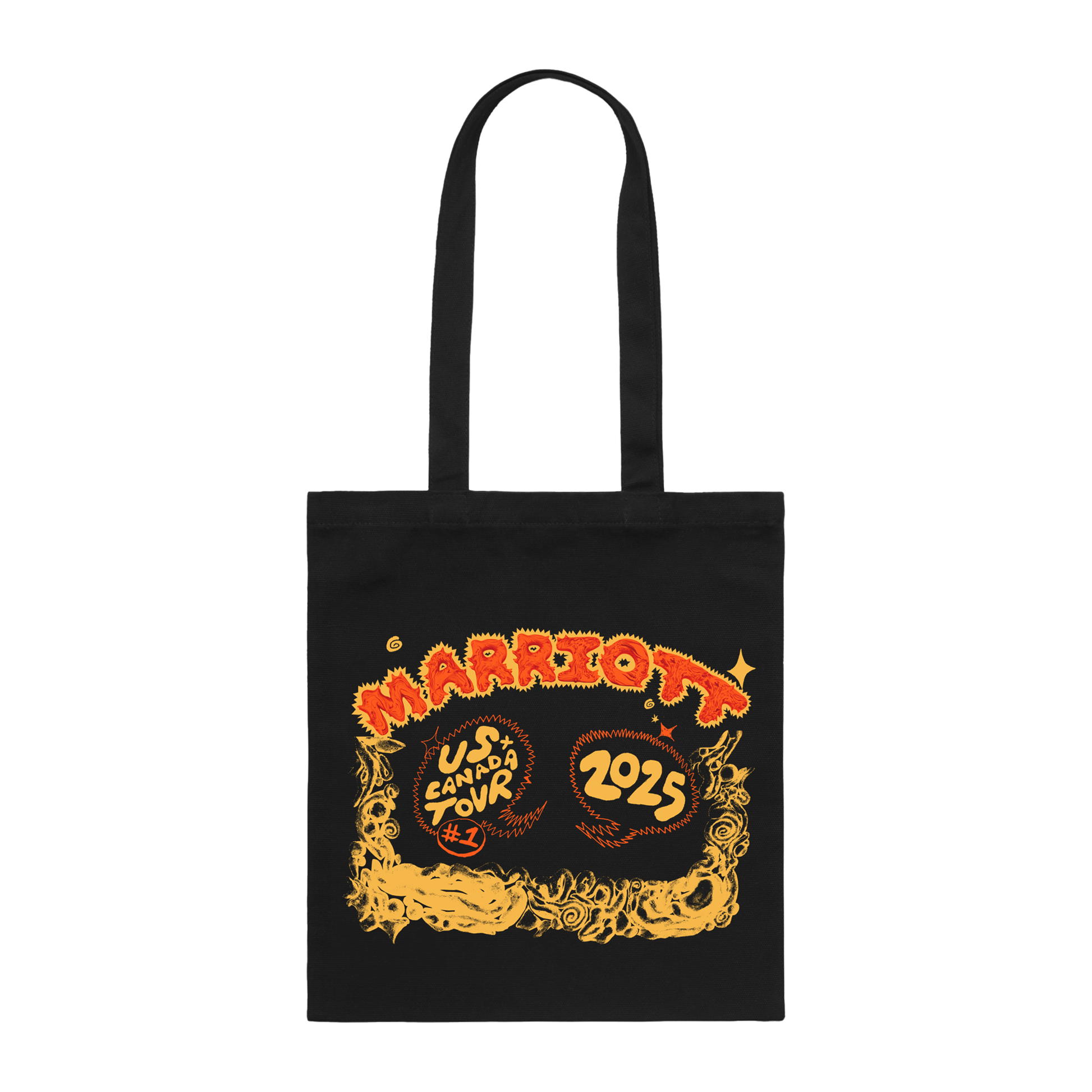 Marriott logo with US & Canada 2025 Tour printed onto a black tote bag.